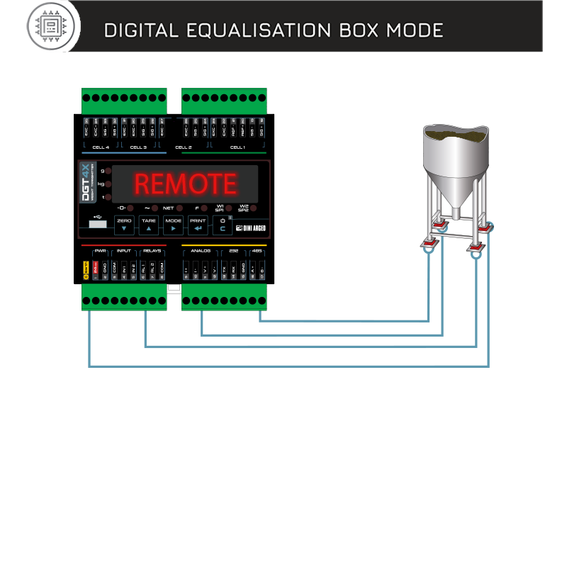 DGT4XMODTCP | High speed 4 channel Din rail weight transmitter, with 2 IN, 2 OUT and MODBUS TCP/IP port. 5-key keypad, LED display. |